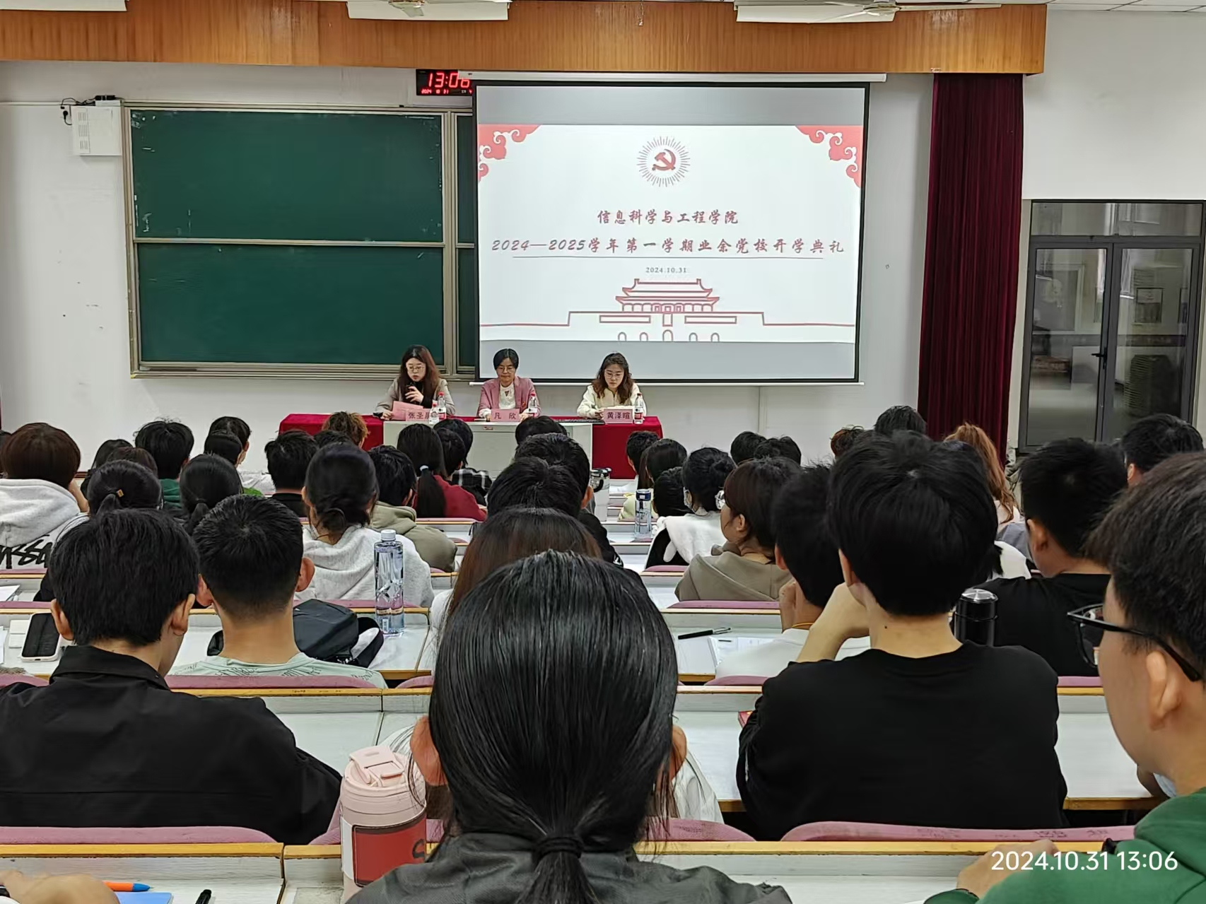 2024年10月31日信息科学与工程学院(机械工程学院)2024-2025学年第一学期业余党校开班典礼在博闻楼报告厅举行。学院党委副书记凡欣、党校班主任和全体党校学员参加,班主任张圣晨主持典礼。