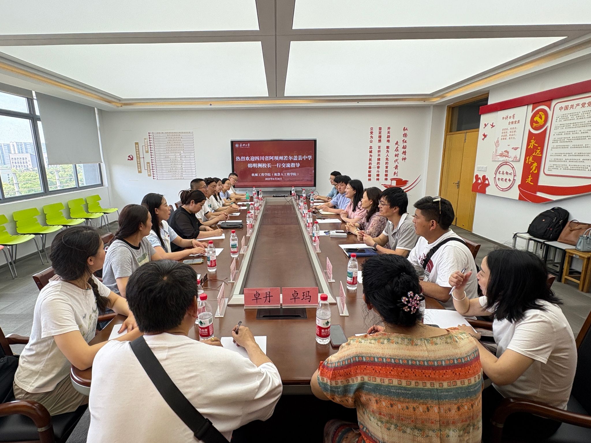 6月26日上午,四川省阿坝州若尔盖中学党委与伟德官网党委开展党建联建活动。四川省阿坝州若尔盖中学党委副书记、校长韩明洲,副校长安忠富,各党支部负责人和党员代表;伟德官网党委书记战昕、党委副书记李寒星、副院长鹿业波、大学物理教研部党支部、实验中心党支部、学生党支部负责人共同参与活动。