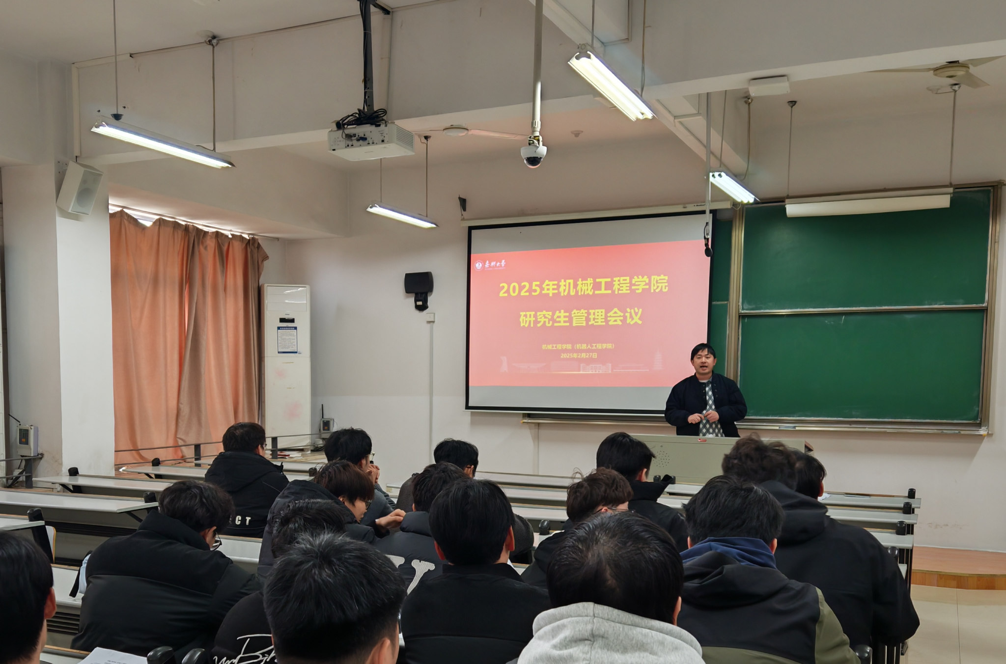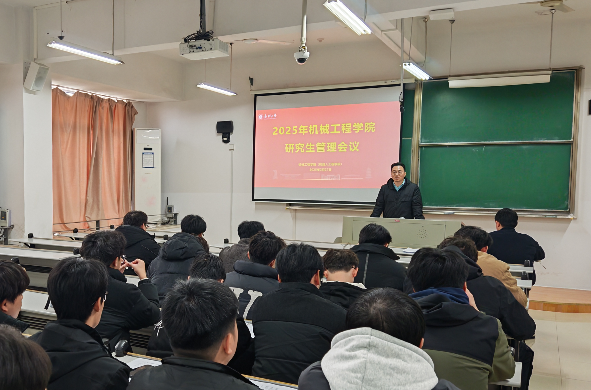 为进一步加强对研究生的管理与培养,全面提升学生的综合素质,机械工程学院于2025年2月27日在兴礼楼319召开了研究生管理会议。会议由学院副院长鹿业波主持,党委副书记、纪委书记李寒星出席,机械工程学院全体研究生参加。